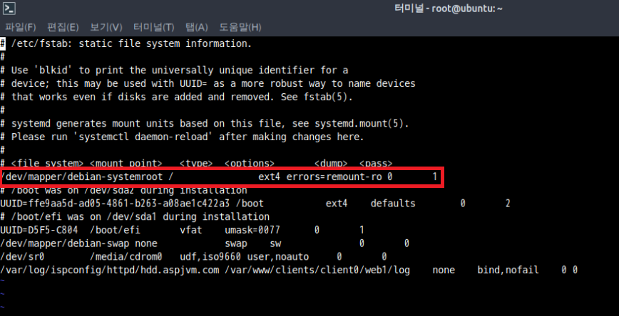 8) fstab 수정