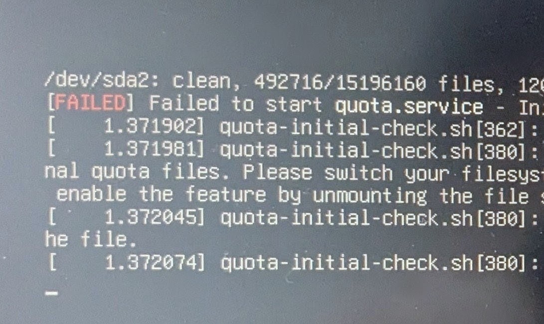 [FAILED] Failed to start quota.service - Initial Check File System Quotas.