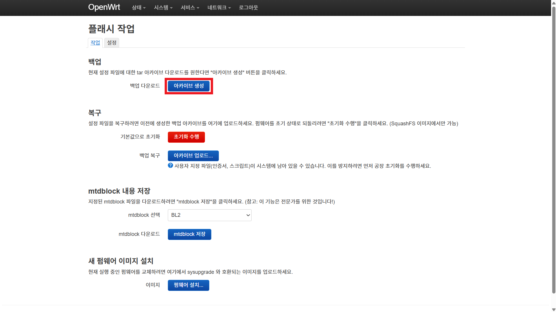1. LuCI를 이용하여 백업 다운로드
